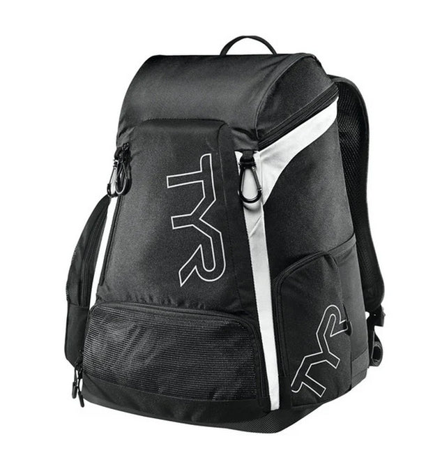 TYR Alliance 30L BackpackA new twist on an old classic, the LATBP30 is packed with state-of-the-art features engineered for athletes on the go. With a cutting-edge space saving design, the 30L maximizes storage without the bulk. In addition to contour shaped padding for ideal ergonomics and lumbar comfort, the new design also includes multiple front and side pockets, expandable mesh pockets for separating wet and dry items, spring hooks for wetsuits