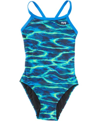 Stay a step ahead of the competition in the TYR Women's Lambent Diamondfit Swimsuit.Constructed with TYR's most durable textile, Durafast Elite the DAMB7A performance swimsuit utilizes high denier poly fiber and innovative circular knit construction to combine the strength and colorfastness of polyester with the comfort of spandex. Featuring a medium neckline, sleek/flexible straps, keyhole back, moderate cut leg and graphic print, the Diamondfit is ideal for athletes who want reliable coverage during every swim.TYR performance swimsuits are fully lined, provide UPF 50+ sun protection, 360 degree range of motion and an antimicrobial lining for freshness. All Durafast Elite suits are chlorine proof and sustain an impressive 300+ hours of performance.TYR Durafast Elite: 94% Polyester / 6% Spandex